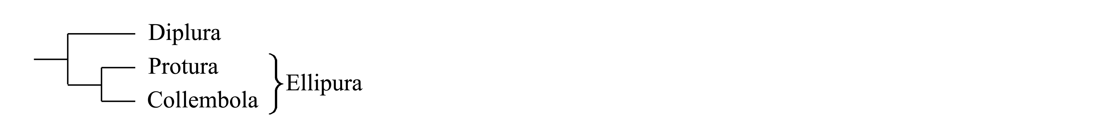 Здесь мы принимаем деление Entognatha на два подчиненных таксона – Diplura и Ellipura (с. 0000).