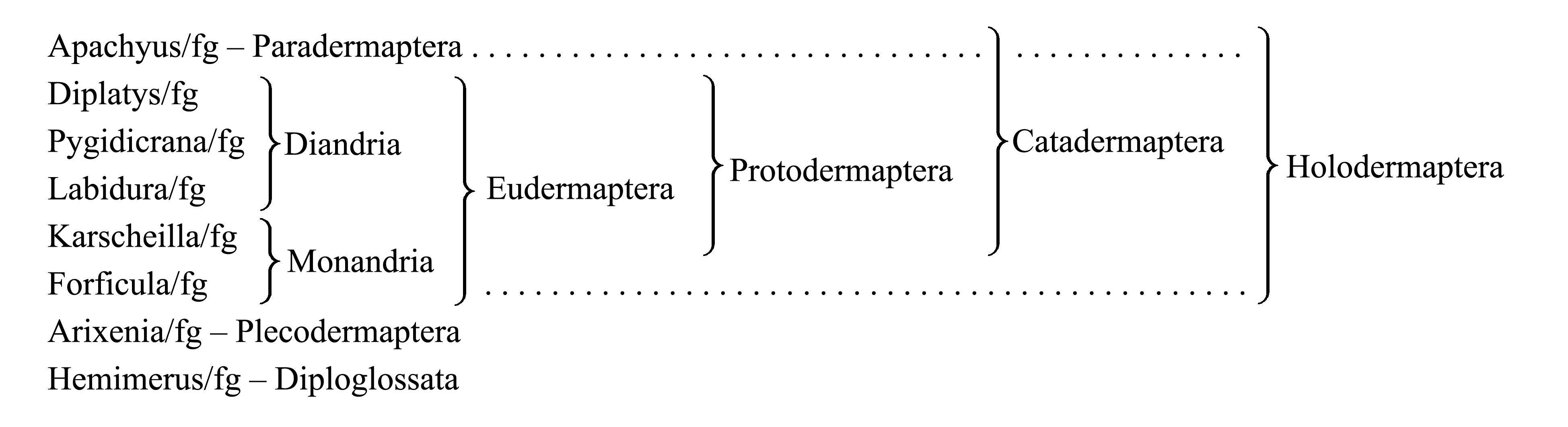II. Деление Neodermaptera на Paradermaptera, Diploglossata и Eudermaptera