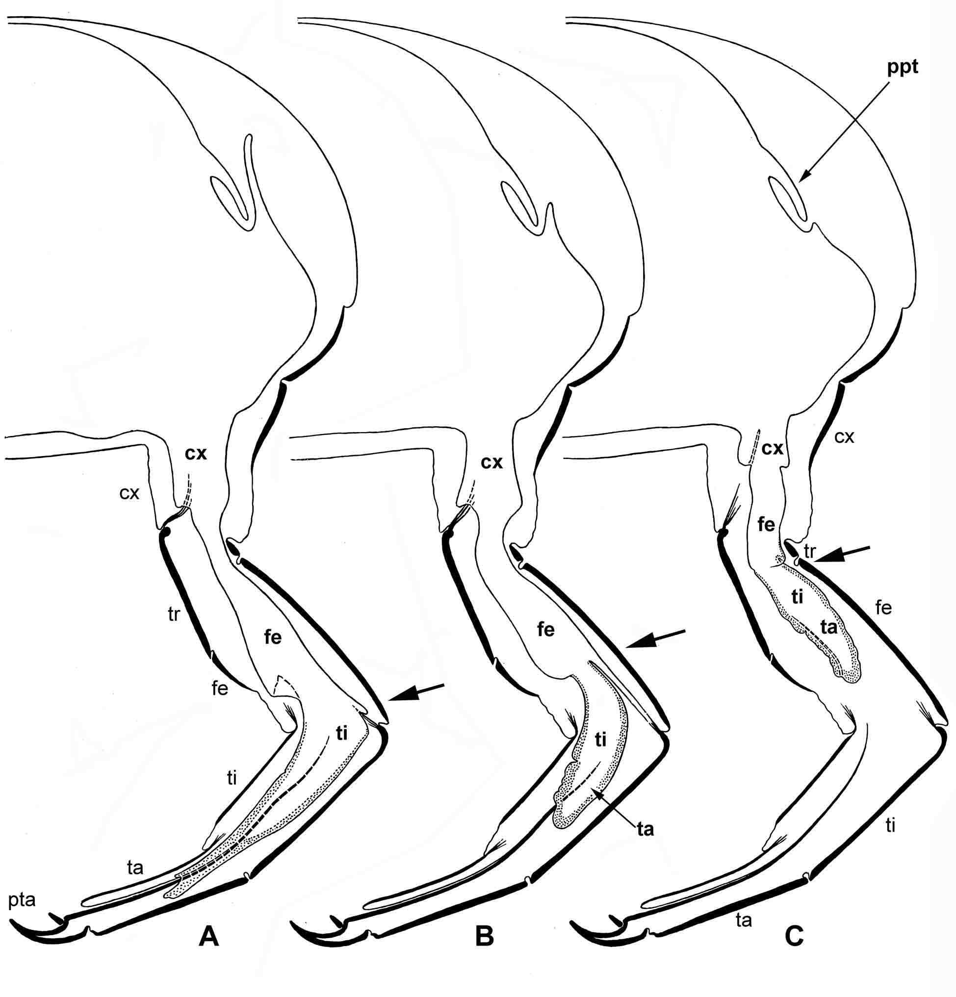 Рис. 10.1.1. Эволюция личиночно/куколочной трансформации ног